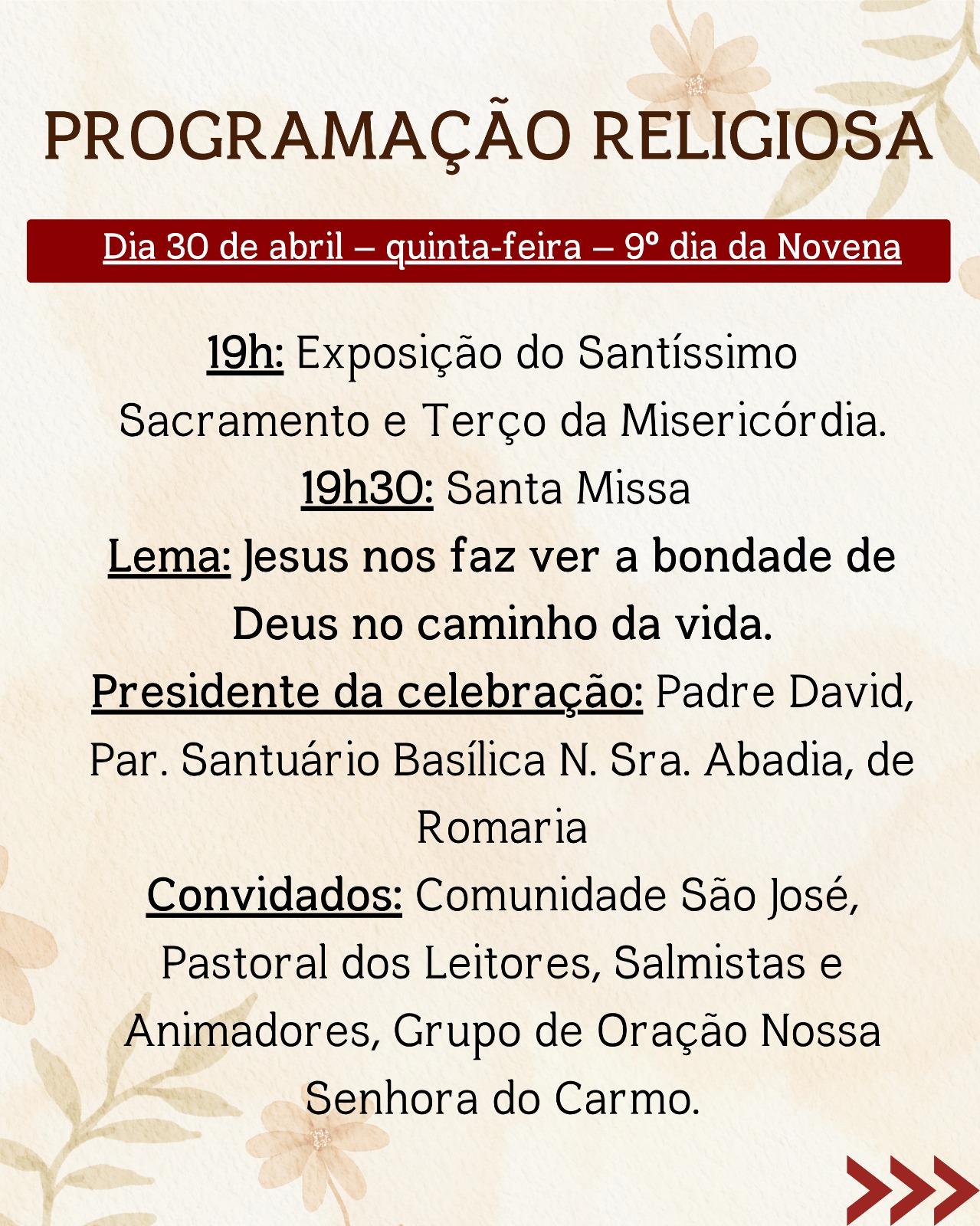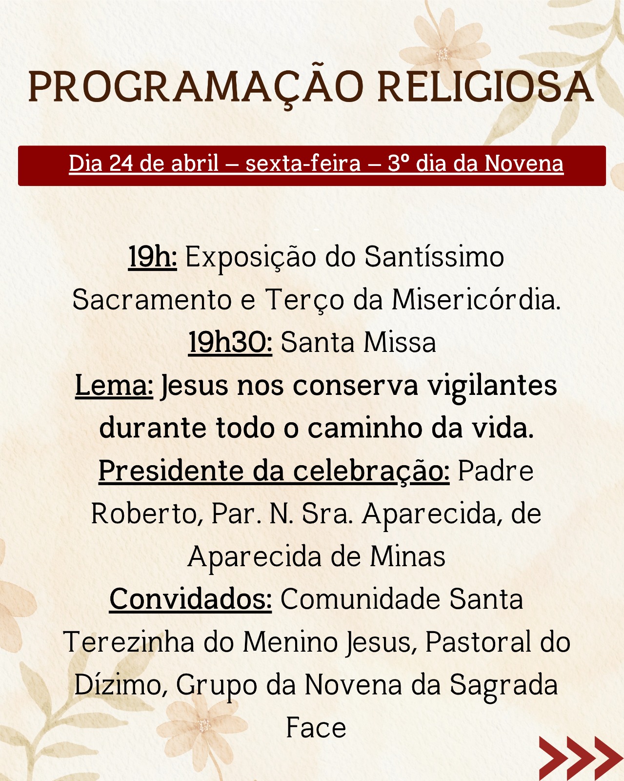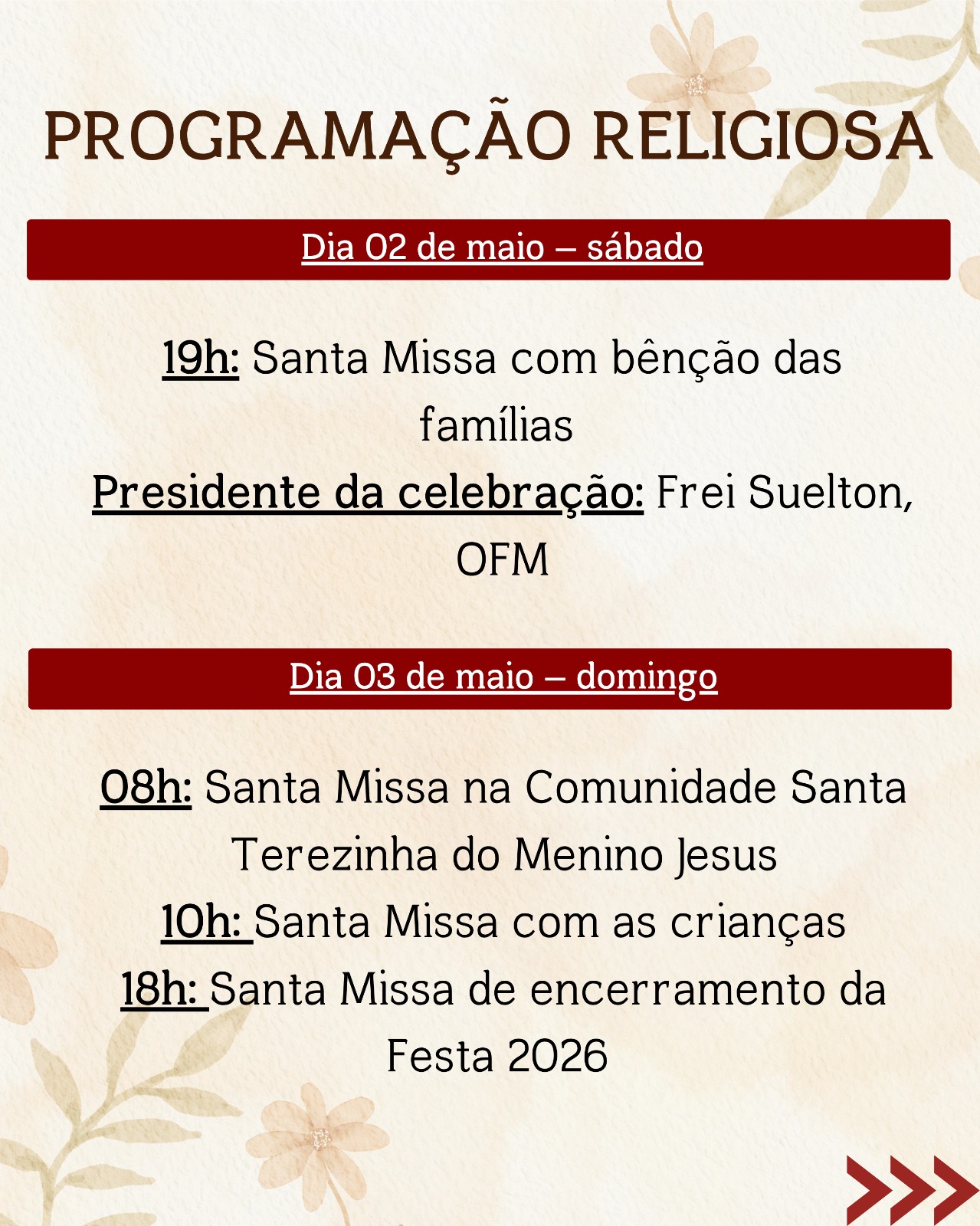 Ao longo de todos os dias, a festa será uma oportunidade de encontro com Deus e com os irmãos, fortalecendo a fé e a comunhão em nossa comunidade.