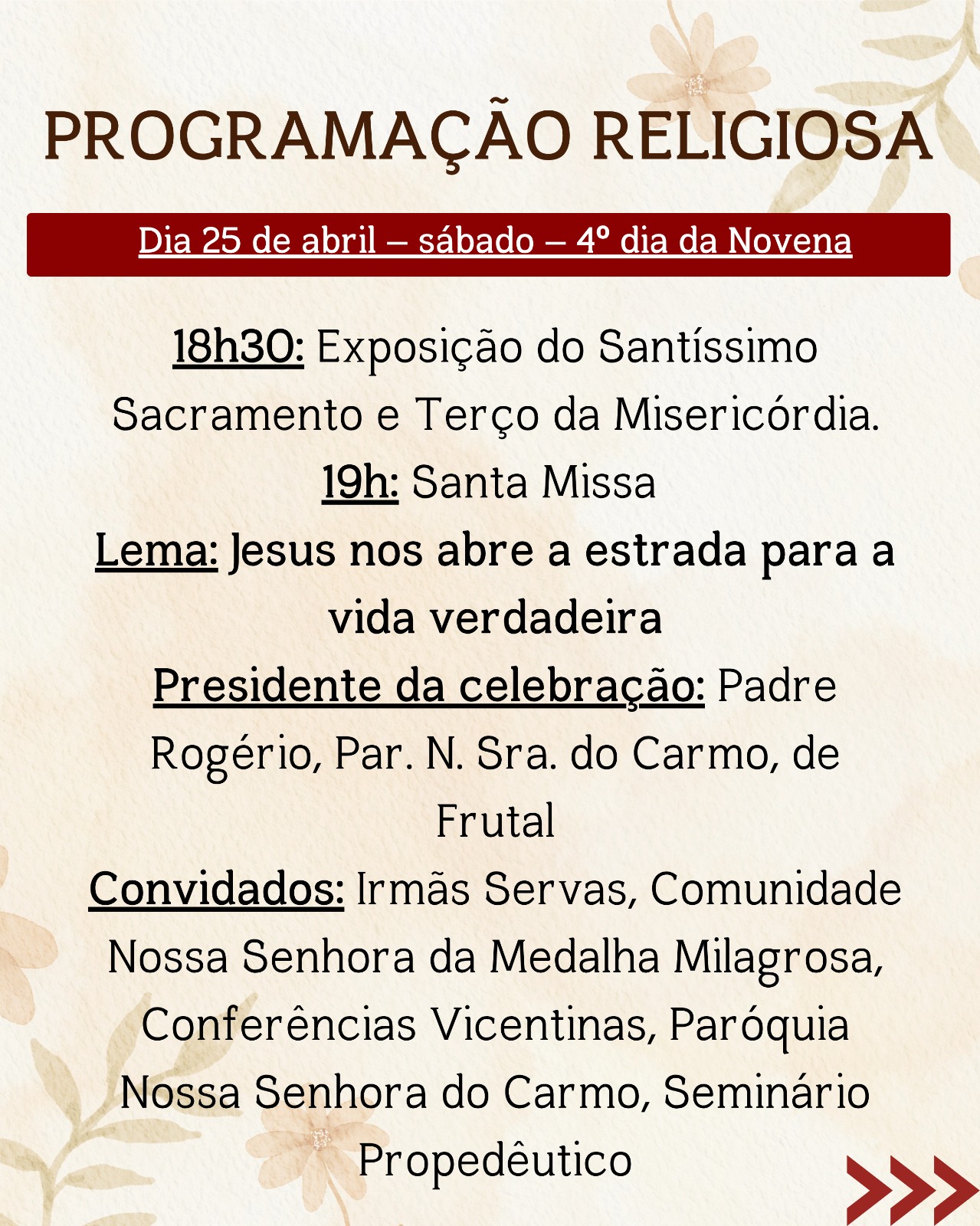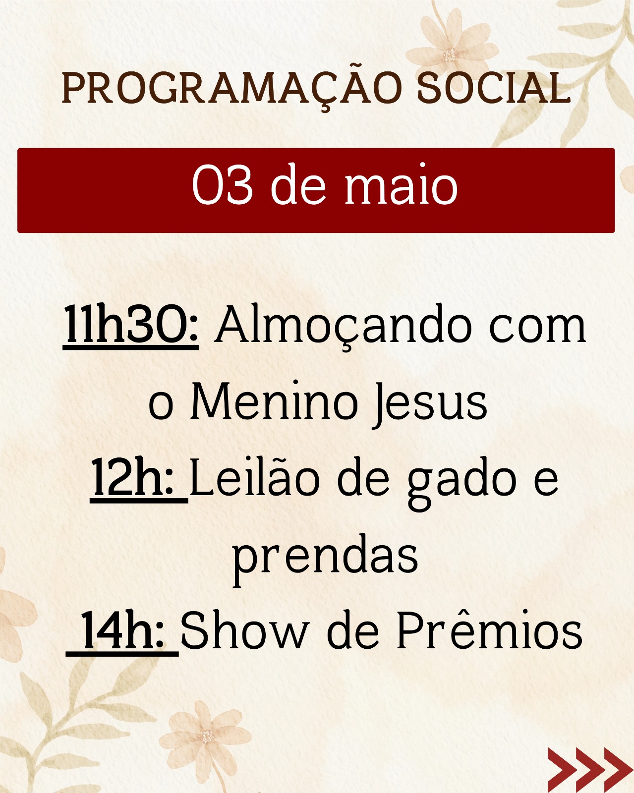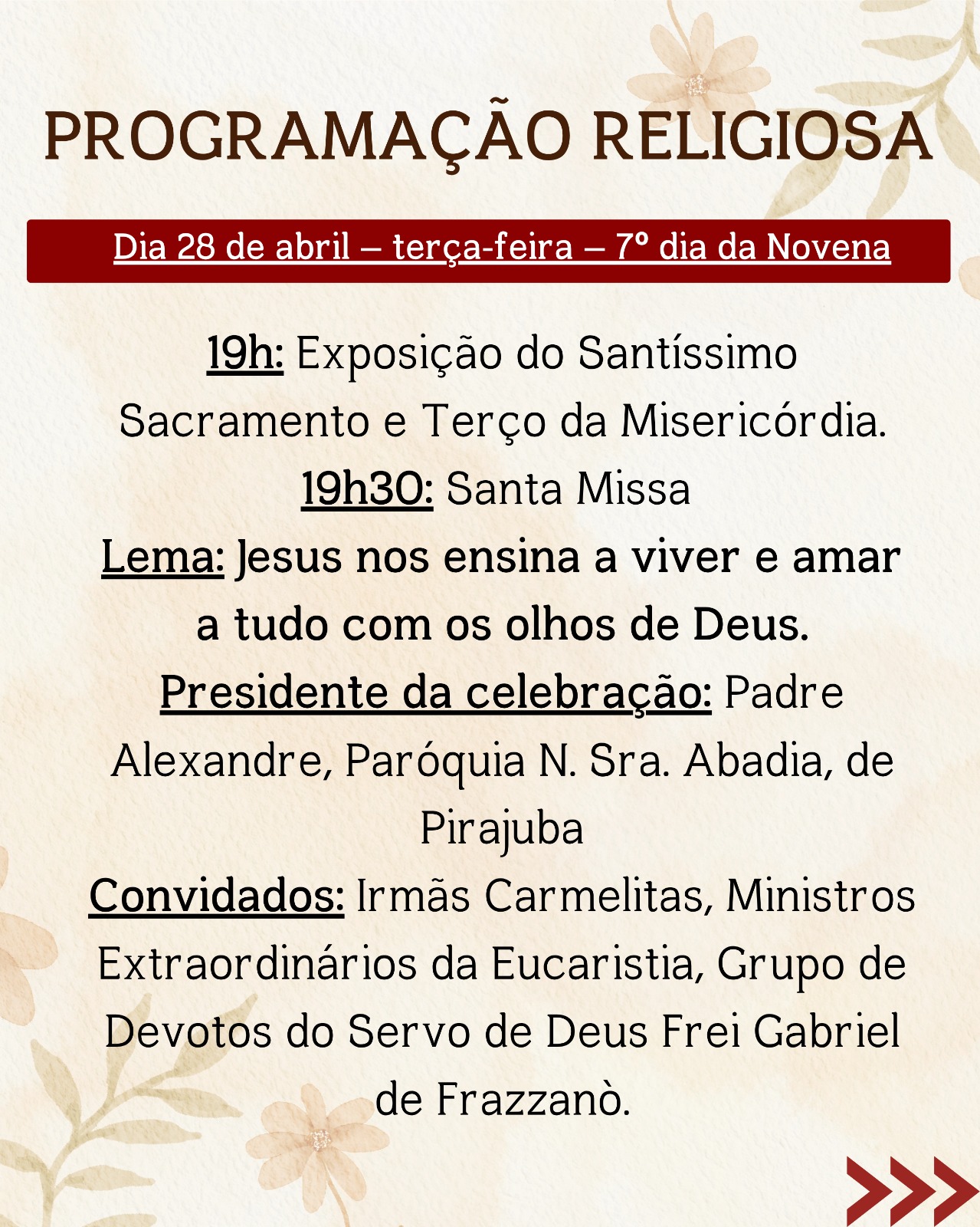 Ao longo de todos os dias, a festa será uma oportunidade de encontro com Deus e com os irmãos, fortalecendo a fé e a comunhão em nossa comunidade.