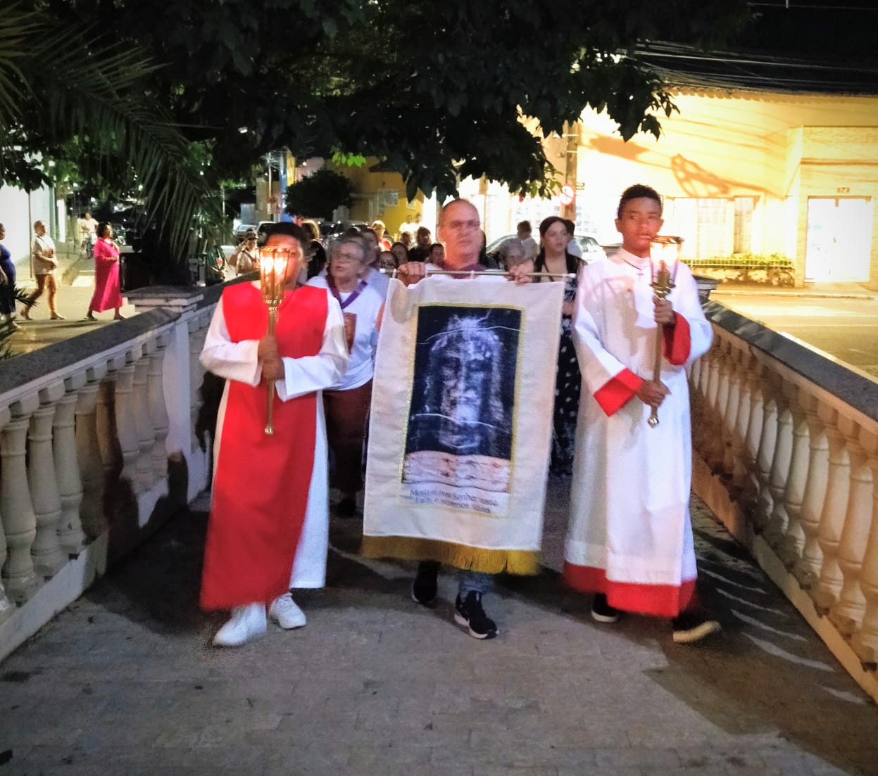 Ao final da missa, os fiéis, junto ao Apostolado e sob a condução do Diácono Elvecio, saíram em procissão, testemunhando publicamente sua fé e devoção. O trajeto foi percorrido com recolhimento, elevando preces à Sagrada Face de Jesus.