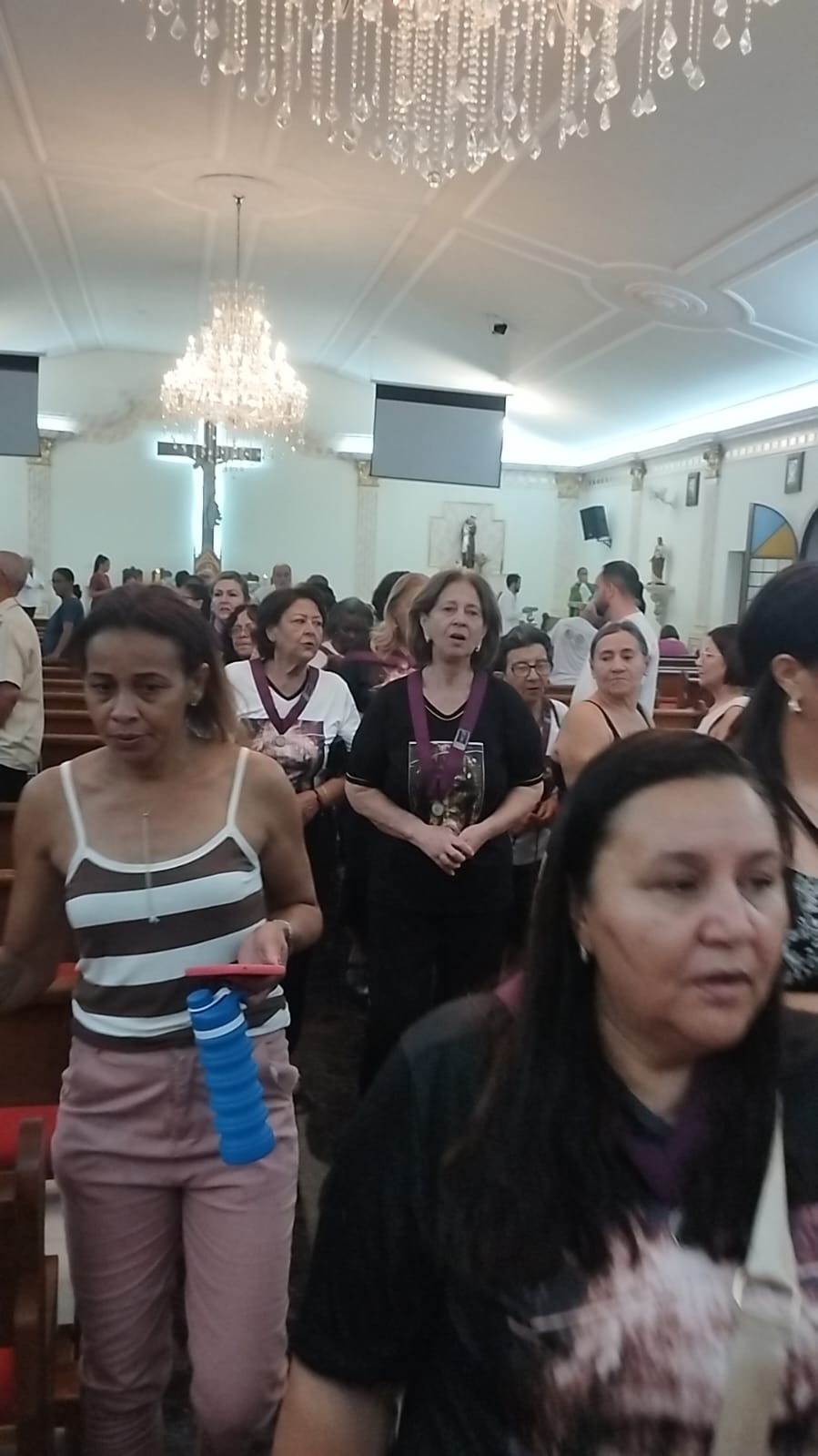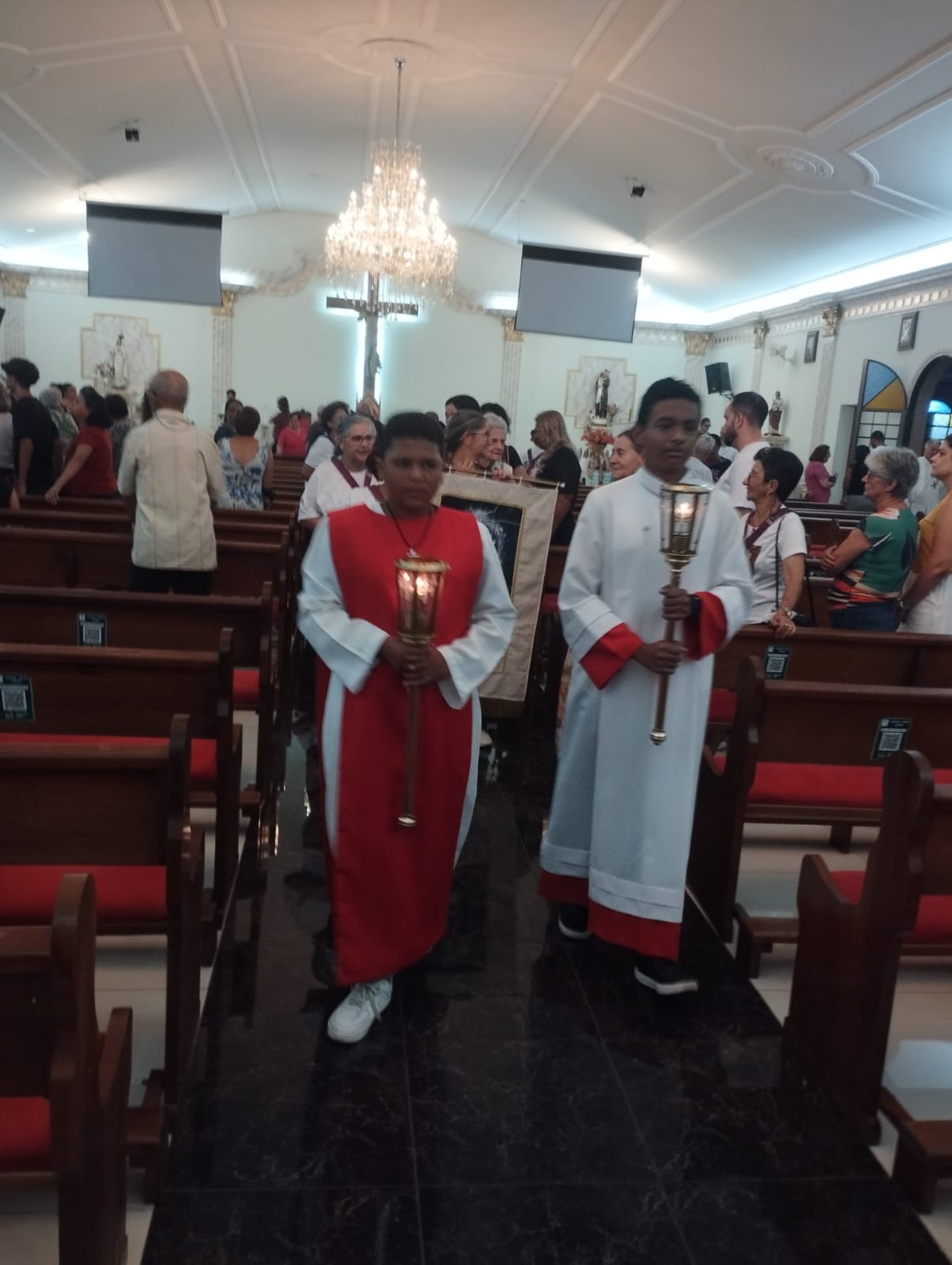 Após essa primeira parte, teve início a santa missa, presidida pelo Monsenhor Levi Fidelis. A celebração contou ainda com a presença do Diácono Elvecio e foi marcada pela adoração ao Santíssimo Sacramento, aprofundando o espírito de contemplação e reparação proposto para a noite.