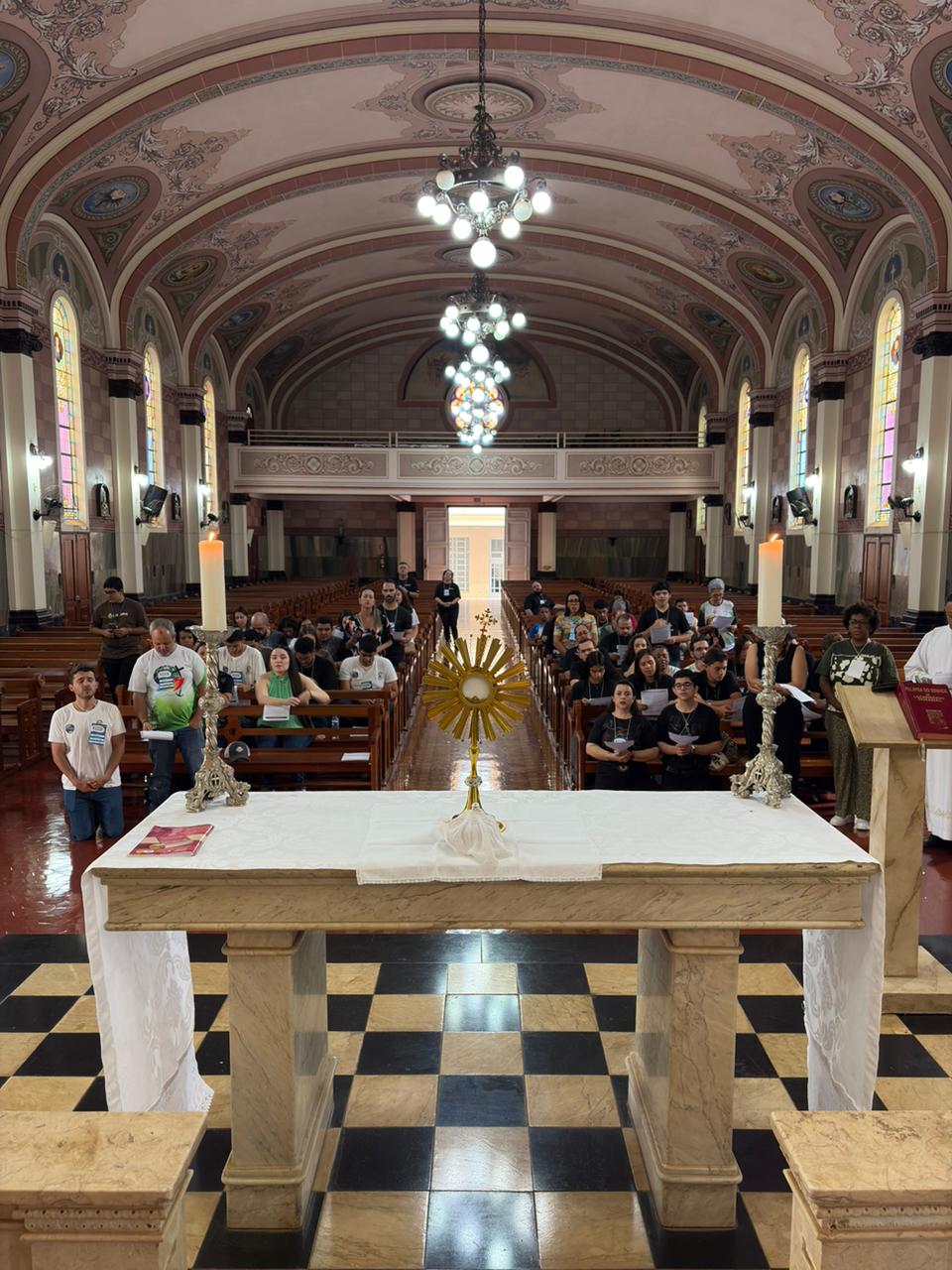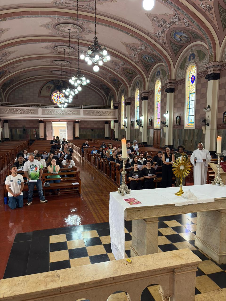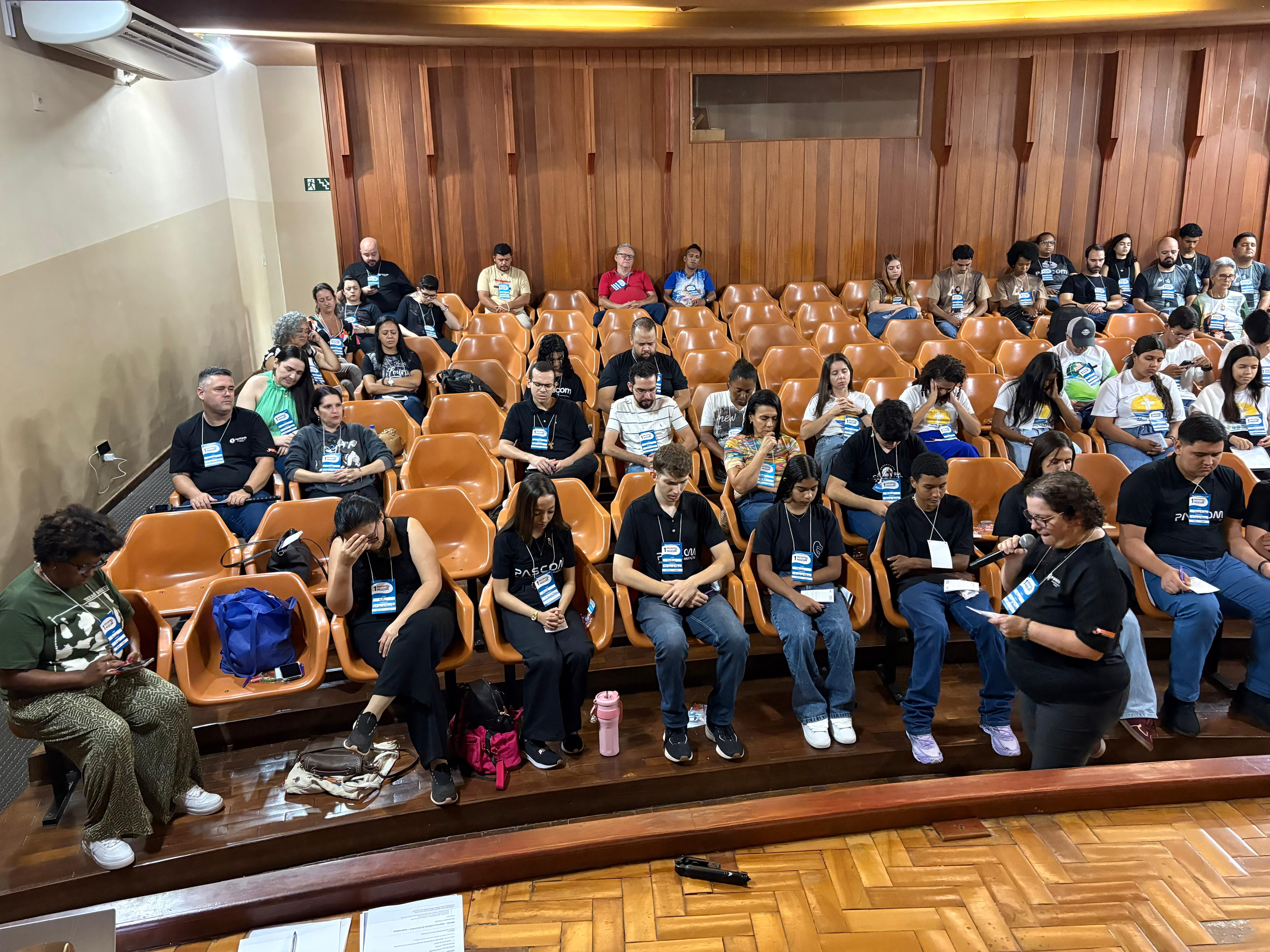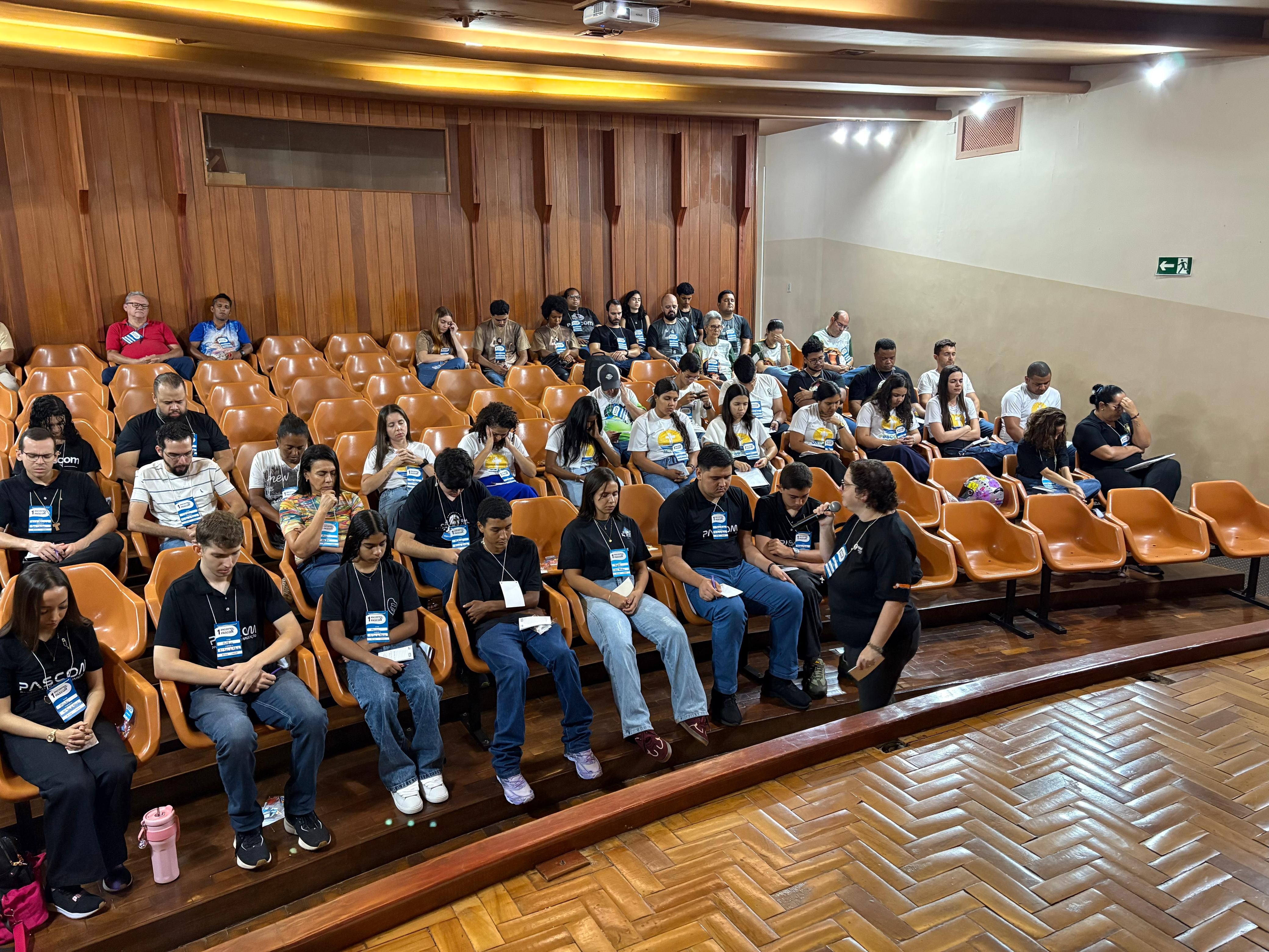 Durante a manhã, os participantes acompanharam momentos formativos voltados à identidade e à missão da Pascom, com atenção especial à atuação durante a Semana Santa, um dos períodos mais significativos do calendário litúrgico.