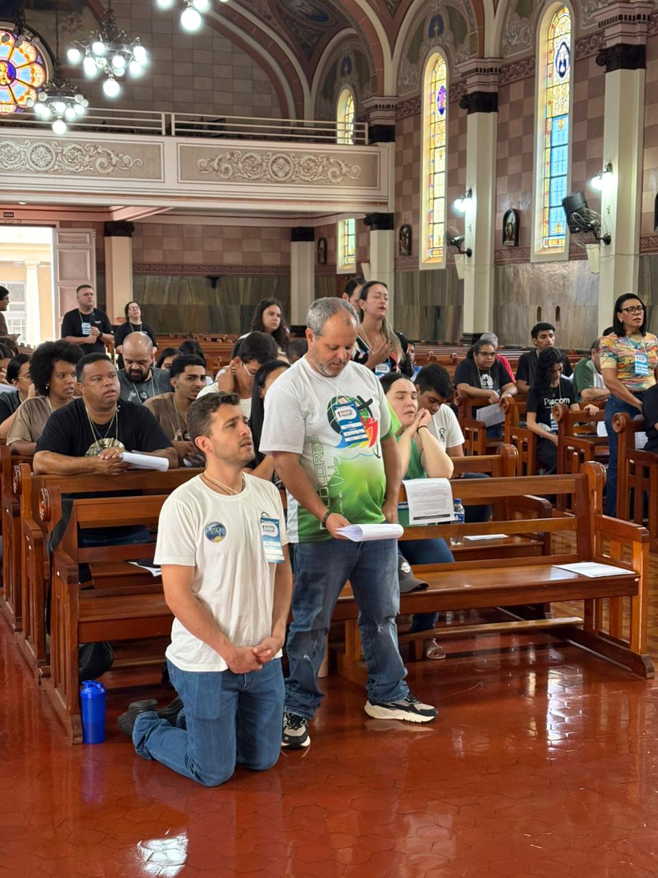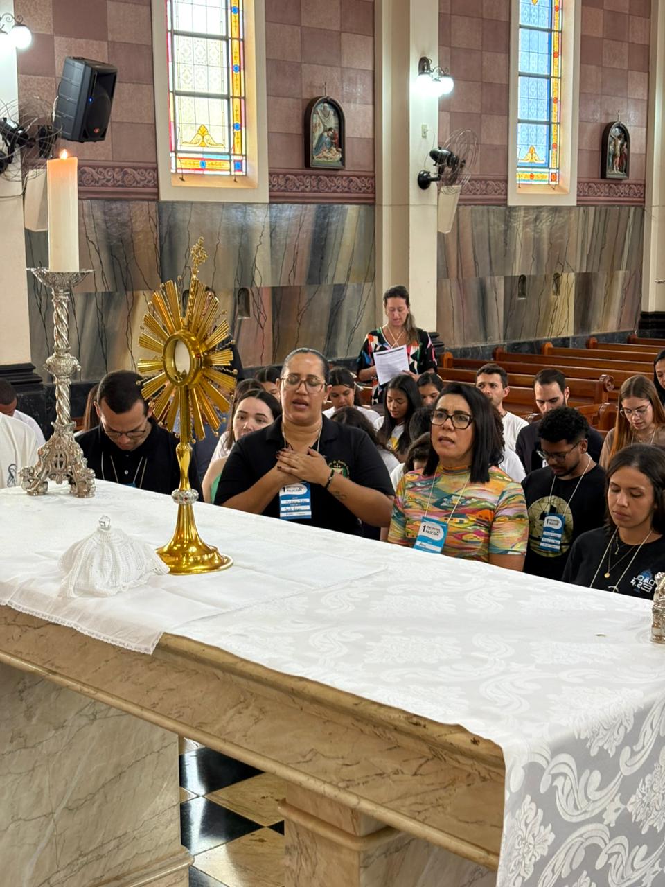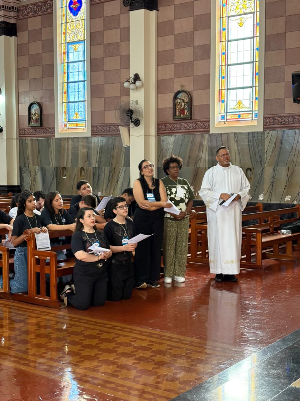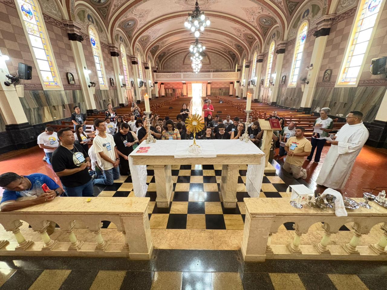Durante a manhã, os participantes acompanharam momentos formativos voltados à identidade e à missão da Pascom, com atenção especial à atuação durante a Semana Santa, um dos períodos mais significativos do calendário litúrgico.