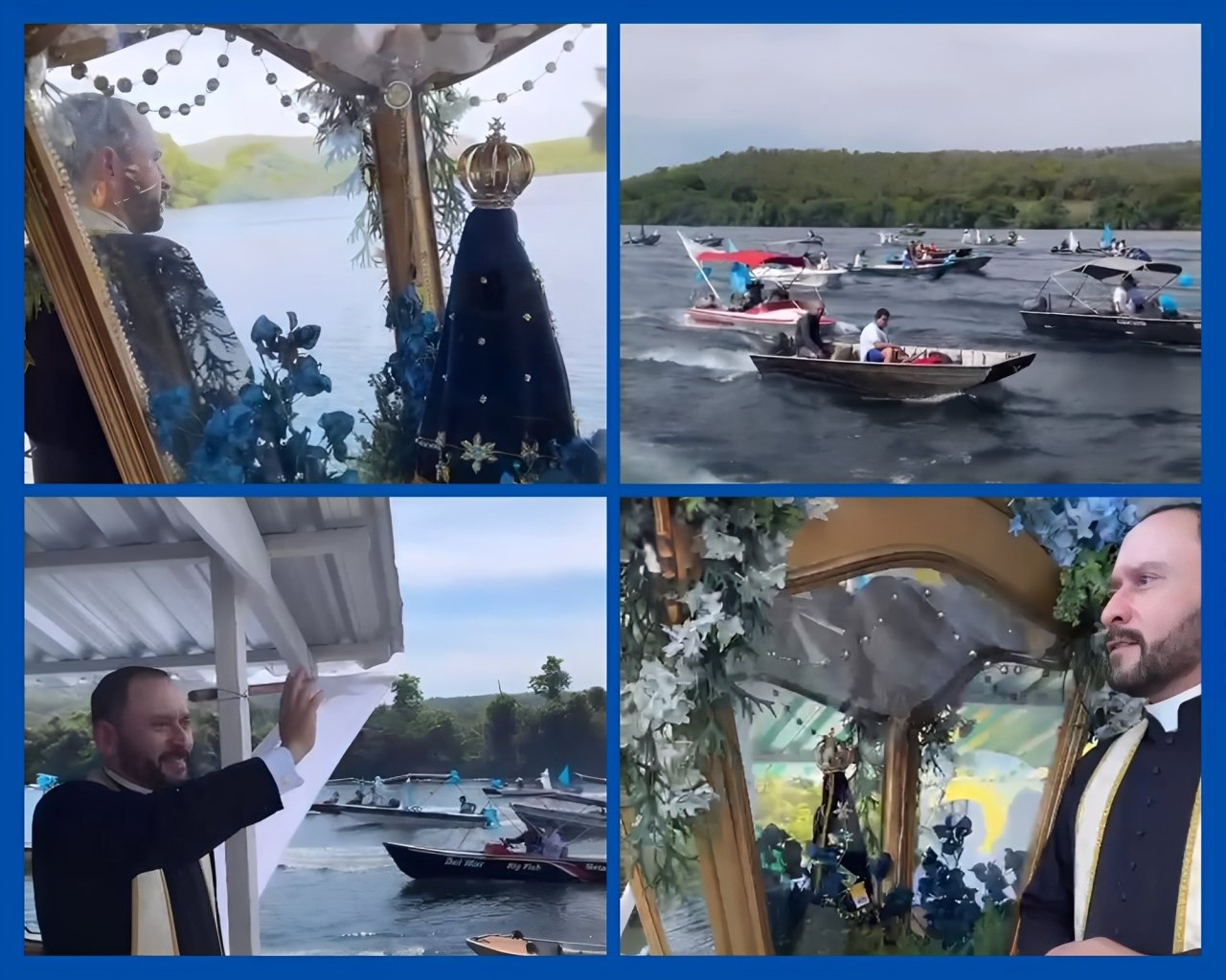 águas serenas tornaram-se caminho de fé, conduzindo a imagem da Mãe Aparecida