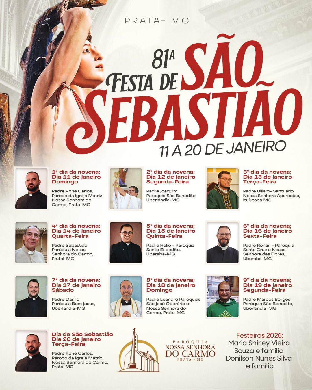 A histórica cidade de Prata, em Minas Gerais, se reveste de fé e alegria para celebrar o seu padroeiro, São Sebastião. A 8ª Festa de São Sebastião acontece de 11 a 20 de janeiro, na Igreja Matriz Nossa Senhora do Carmo, prometendo dez dias de intensa programação religiosa e social que refletem a forte devoção popular ao santo mártir.