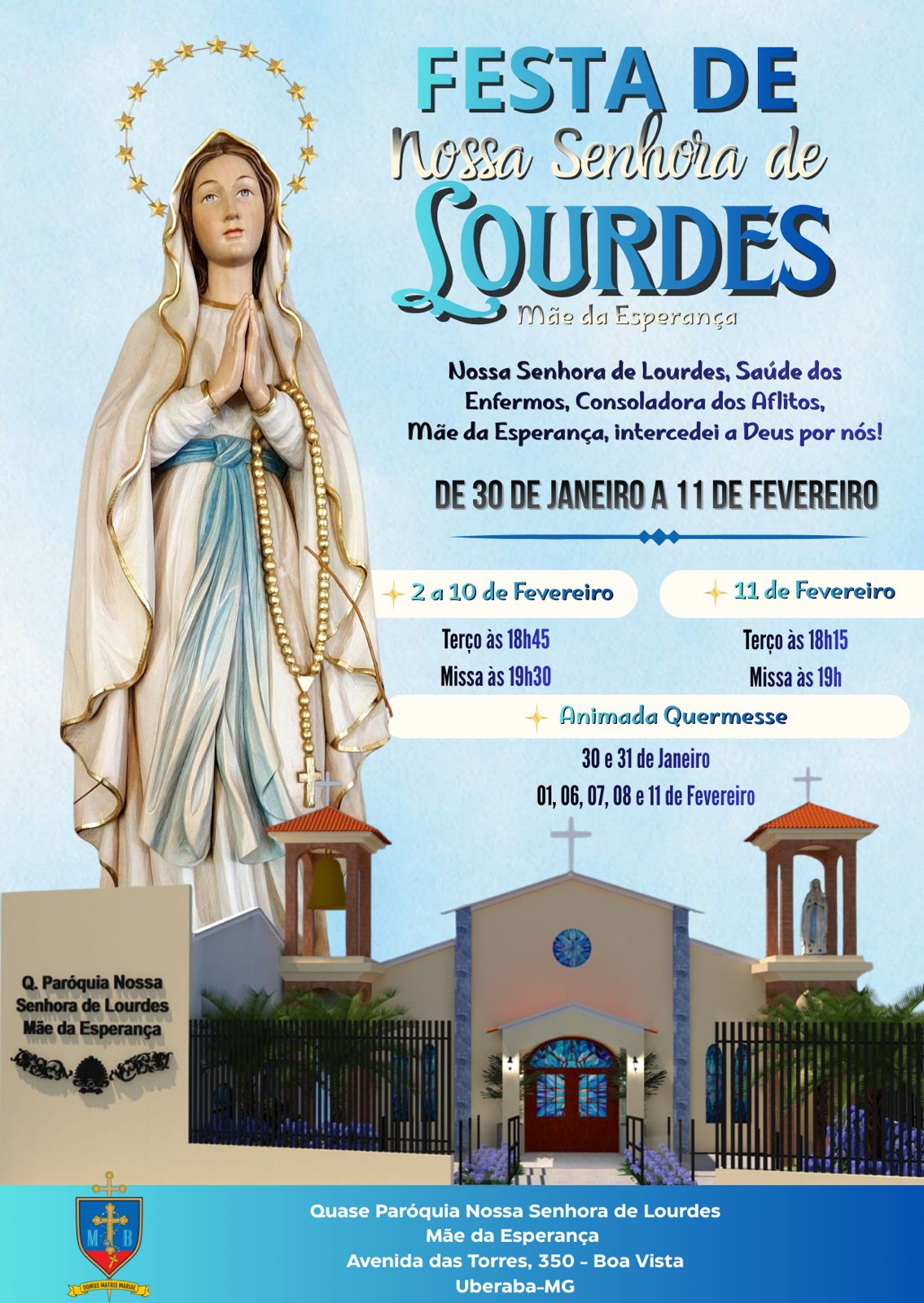 Lourdes, Mãe da Esperança. Uma rica programação acontece na Quase Paróquia
