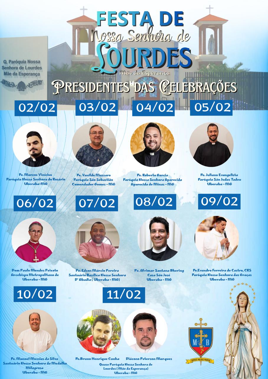 fevereiro, sempre com o Terço às 18h45 e a Santa Missa às 19h30. Cada dia