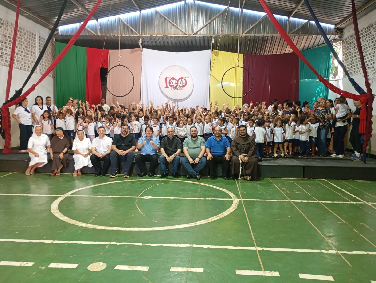 entre as irmãs e as crianças assistidas. A Irmã Nazaré, representante do