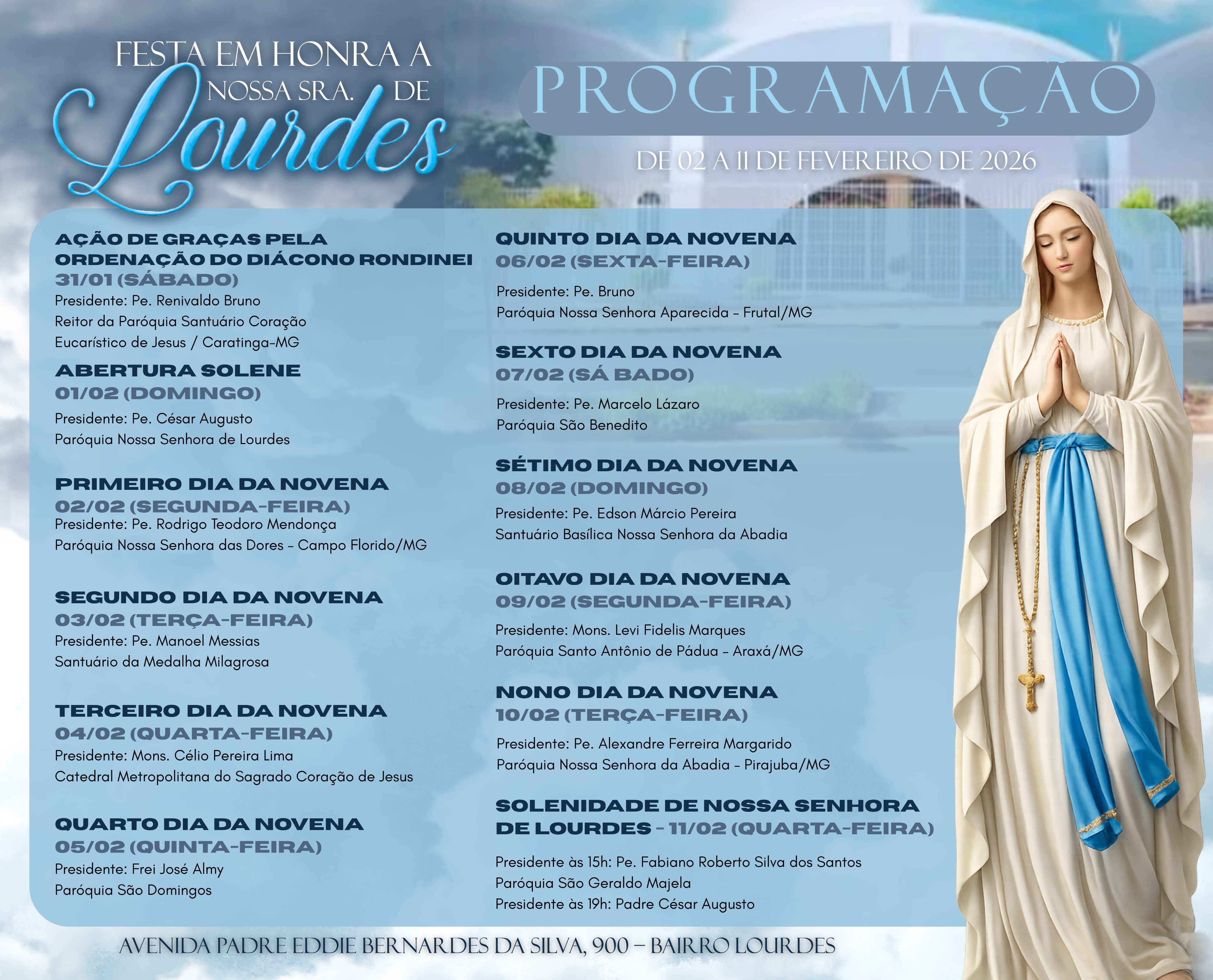 tradicional festa em honra à padroeira, com o tema: “Nossa Senhora de Lourdes: