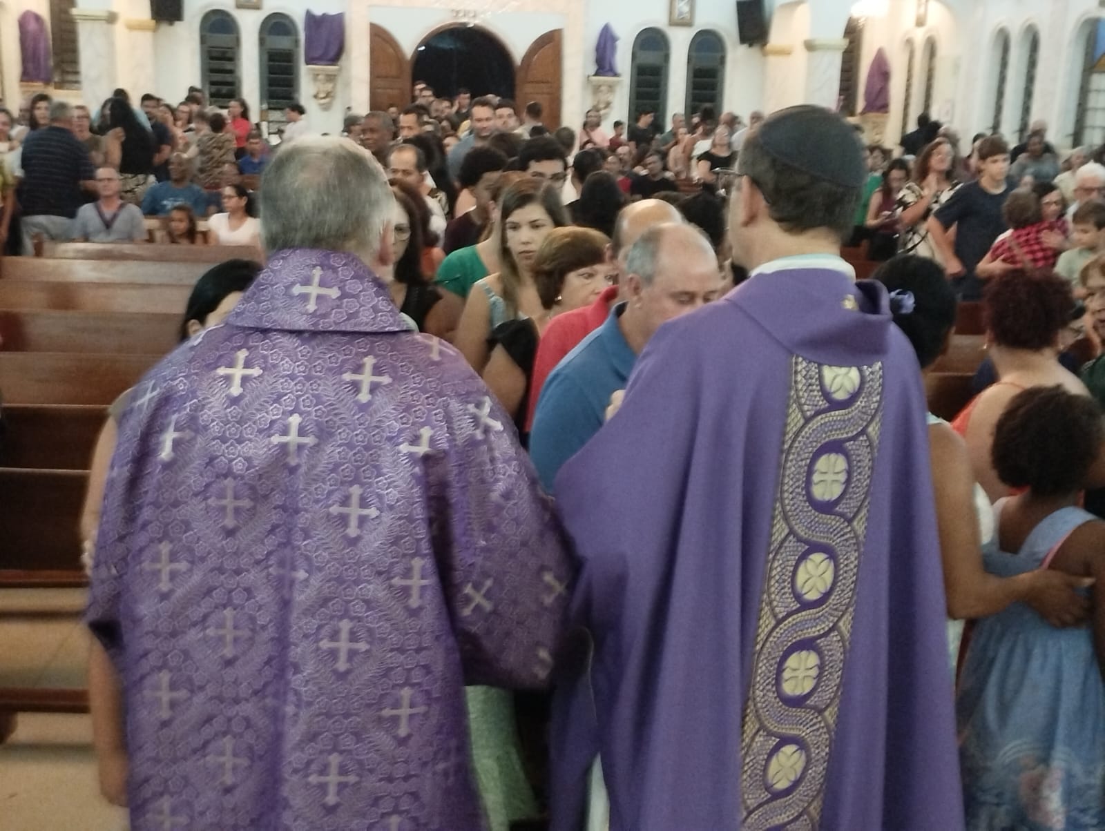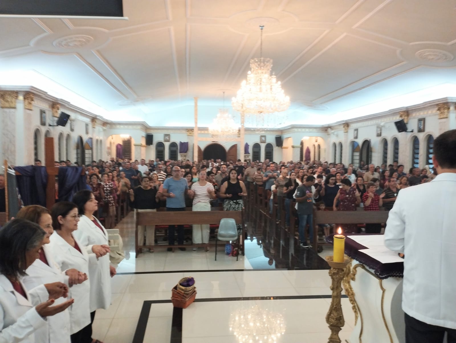 “Não se pode brincar com os propósitos”, advertiu Monsenhor Levi durante a homilia da noite, ecoando o ensinamento que permeou todos os sermões do dia. “Se não levarmos a sério a penitência e o jejum, a gente não melhora, não se santifica. Que cada um faça a sua parte como cristão”, completou o sacerdote, arrancando a reflexão silenciosa dos presentes.