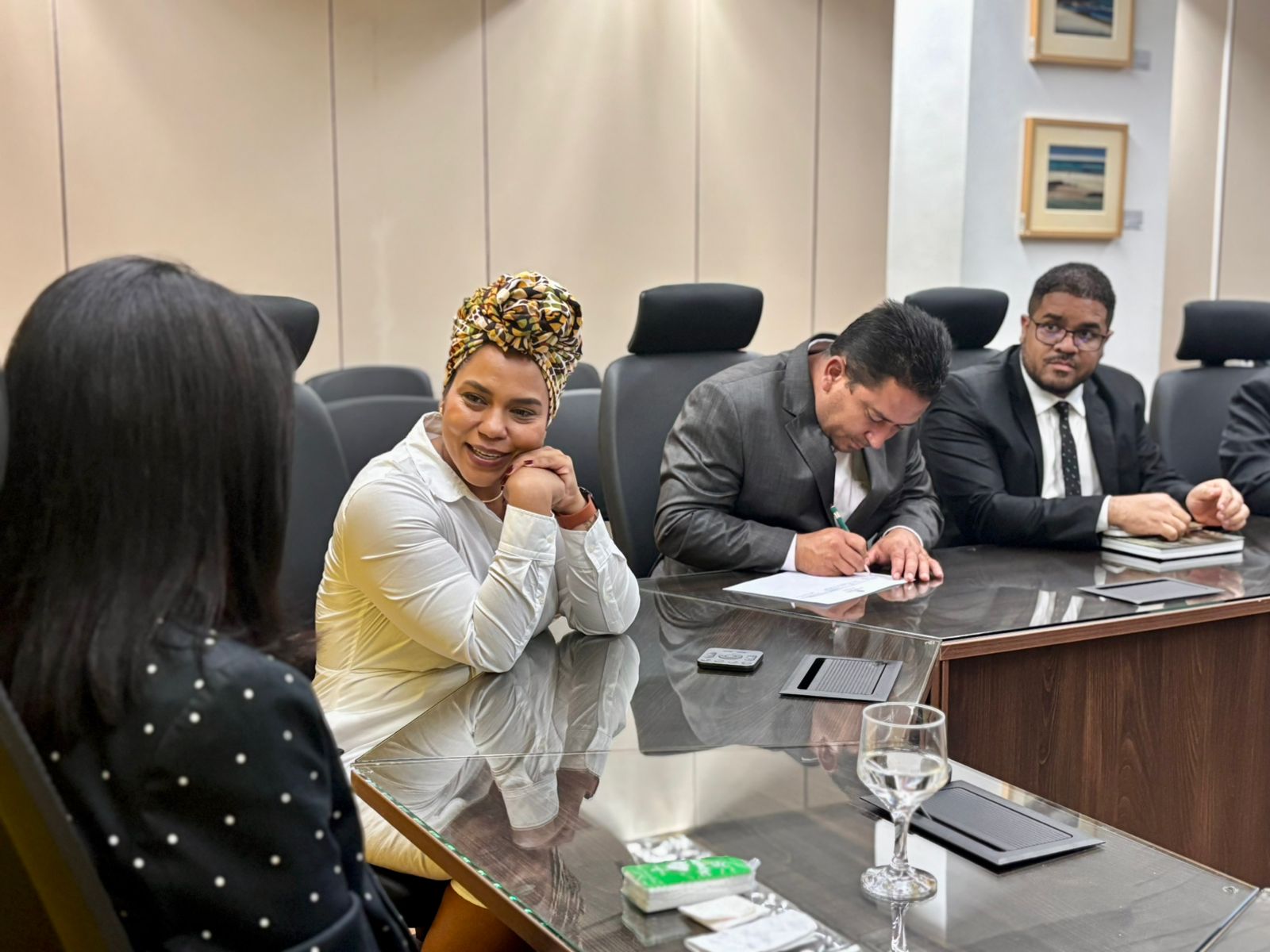 Durante a agenda, a deputada intermediou reuniões com o presidente do IPHAN, Leandro Grass, com a coordenadora do Departamento de Áreas Protegidas do Ministério do Meio Ambiente, Renata Gatti, e com Viviane Esse, chefe da Secretaria Nacional de Transporte Rodoviário do Ministério dos Transportes.